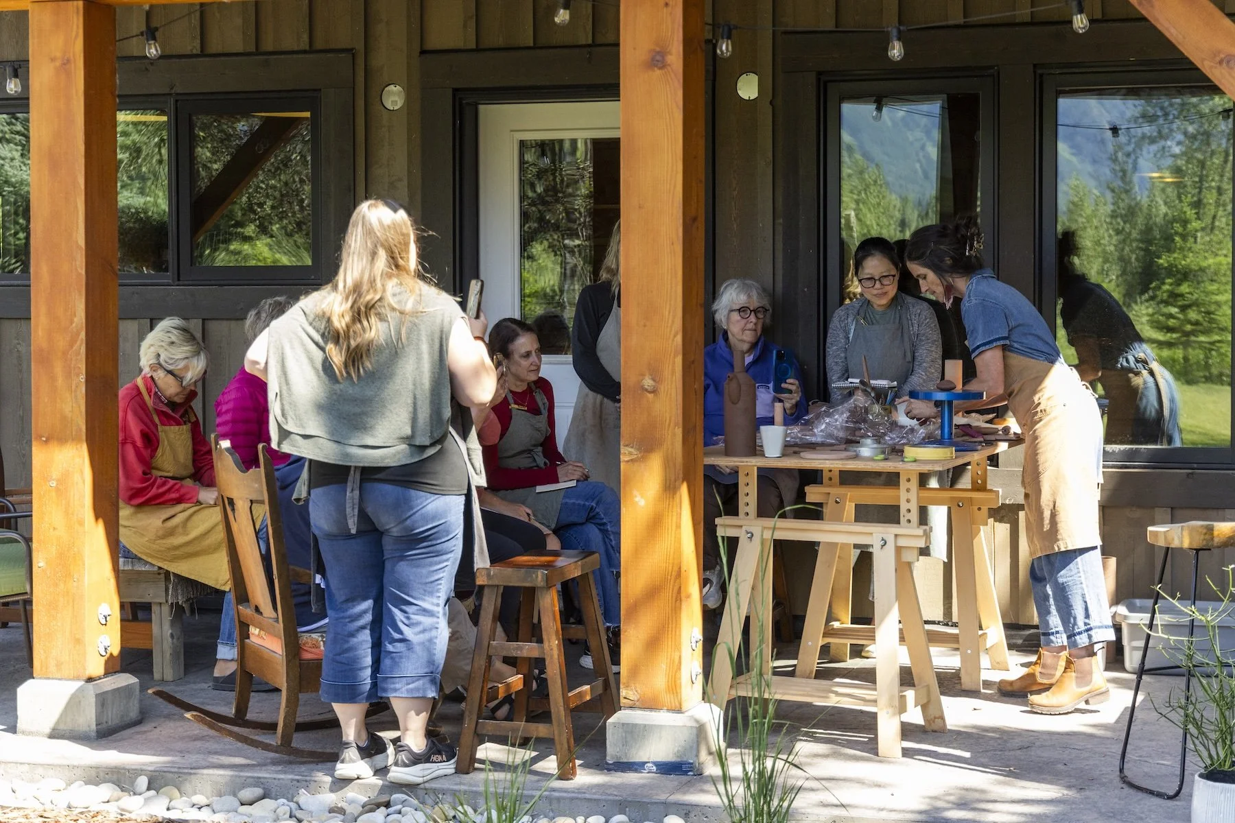 Workshops take place at Sarah Pike’s home studio, located on an acre of land on the edge of Fernie, British Columbia. Fernie is a small mountain town known for its creative energy and stunning landscapes. The property backs onto a beaver pond and the Elk River, so don’t be surprised if you spot moose or beavers during your visit.