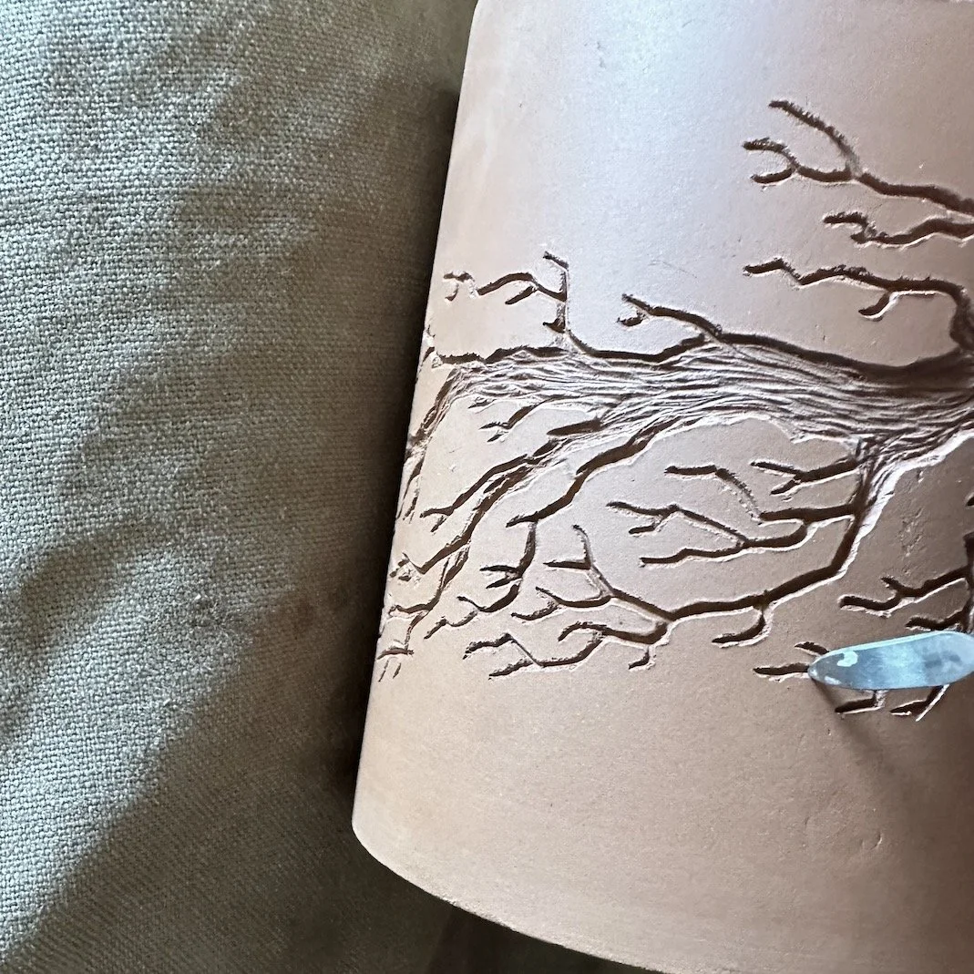 This is a five day, hands on workshop with a focus on texture tools and surface pattern play. Before Sarah makes a slab pot, she makes the texture tools. This is the behind the scenes part of her process. She has spent many years researching and practicing her unique surface design techniques and will demonstrate just how she does it - from initial design on paper to stamp blanks and texture roller blanks, to carving and refining, to stamping and rolling, Sarah will take students on a deep dive into what it takes to texture a pot. Students will explore stamp-making and carving, texture roller making and carving, card cutouts, pattern design, repeat patterns and more. This workshop will primarily focus on the tool-making and surface pattern aspects of slabbuilding, but students will make simple cups, tiles and/or plates as canvases for pattern and texture exploration.